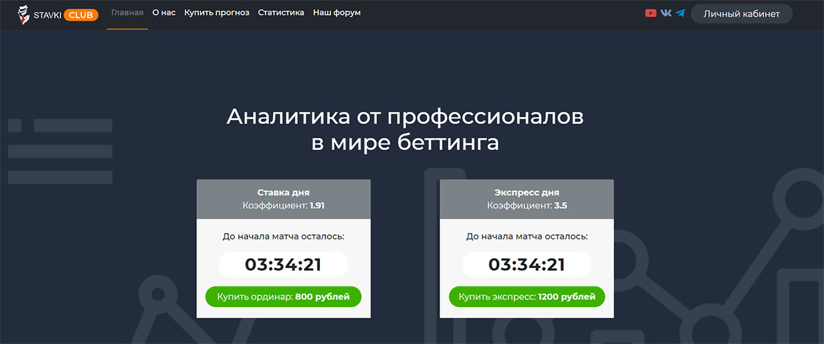 Стоимость подписок ниже среднерыночных. Для сравнения: аналитики с проходимостью 70%+ обычно берут 600–1000 ₽ в день. У Stavki.club ординары и экспрессы продаются отдельно: