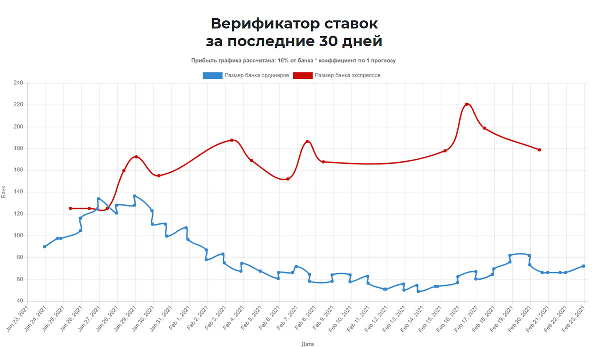 На сайте stavki.club опубликован график роста и падения банка за 30 дней (расчет от фиксированной ставки 10% от банка) — динамика полностью прозрачна. Проект проходил верификацию на независимых сервисах (например, упоминался на bet-hub). Расхождений между выданными прогнозами и отчетами не обнаружено, проигрыши фиксируются честно.