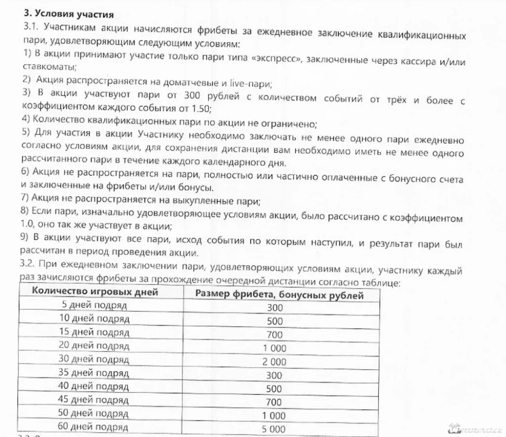 После 60 дней непрерывных ставок с 61-го дня подсчёт игровых дней начинается заново. Клиент может снова зарабатывать фрибеты по той же схеме.