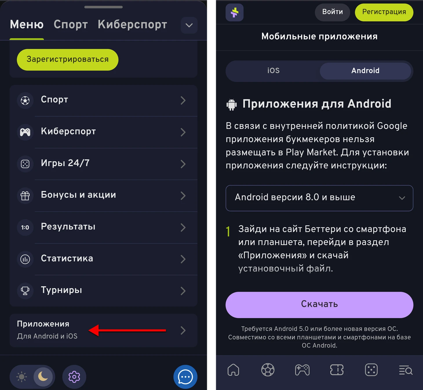 Прямая ссылка на APK с сайта bettery.ru