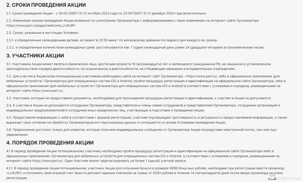 | Промокод | «LUXURY» | Не требуется |