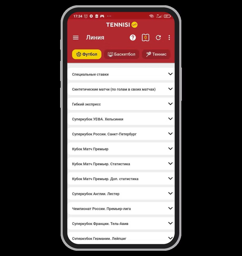 Сайт tennisi.bet удобен, выделен раздел «Эксклюзив» для нестандартных рынков. Мобильное приложение (Android/iOS) скачивается с сайта. Функционал полный: быстрая ставка в один клик, навигация по датам. Минус — в live слабая фильтрация, виды спорта приходится сворачивать вручную.