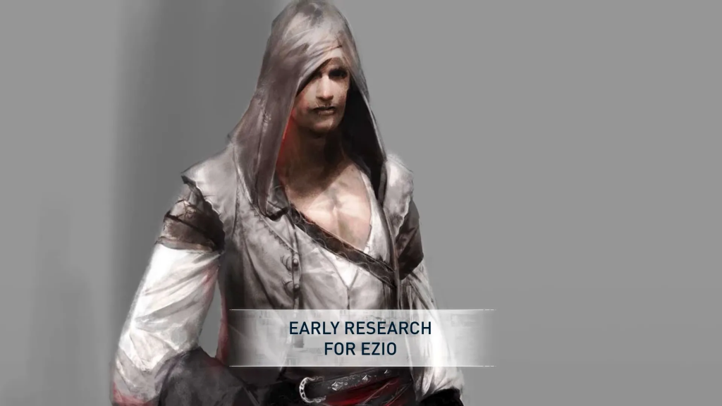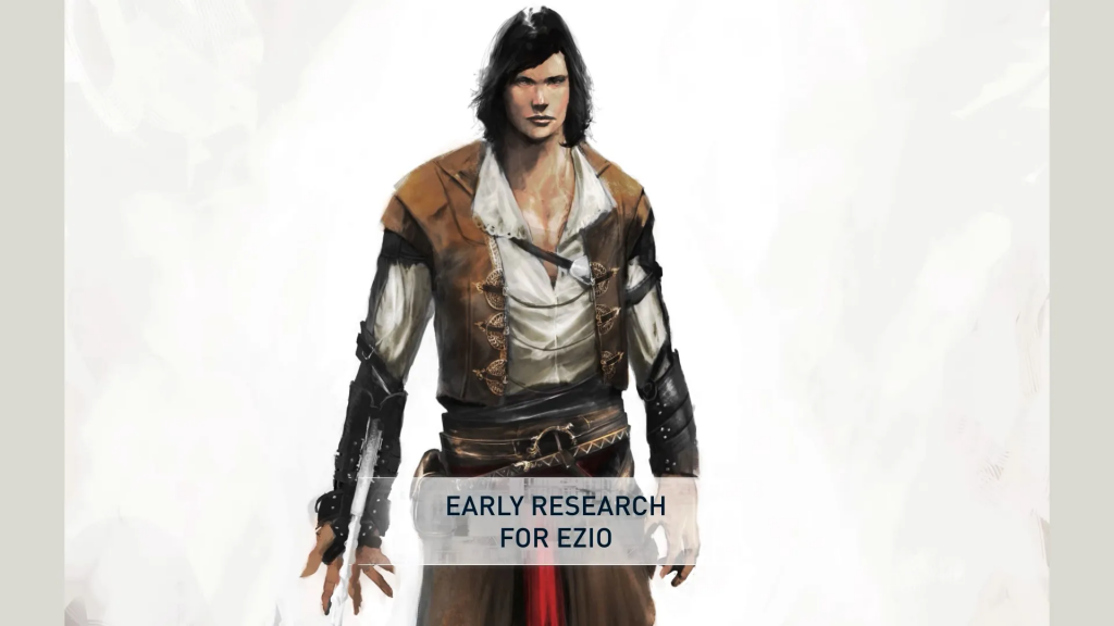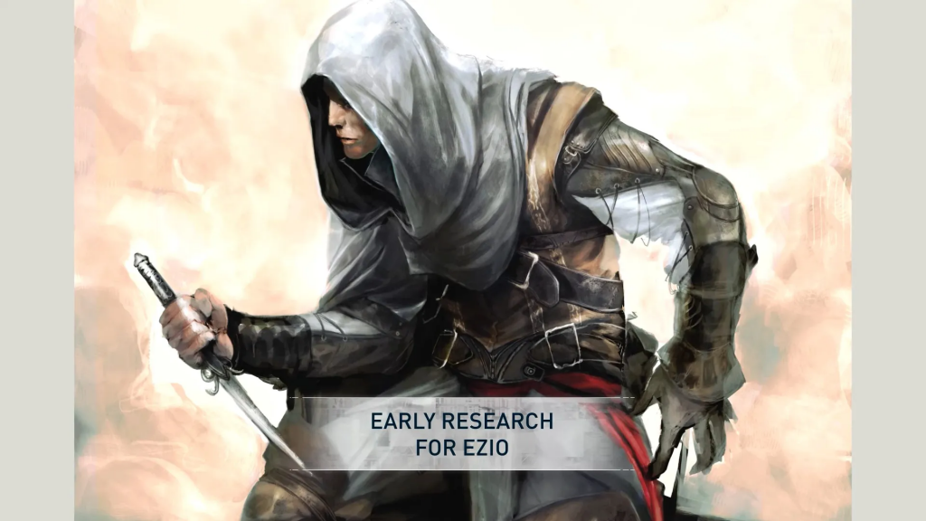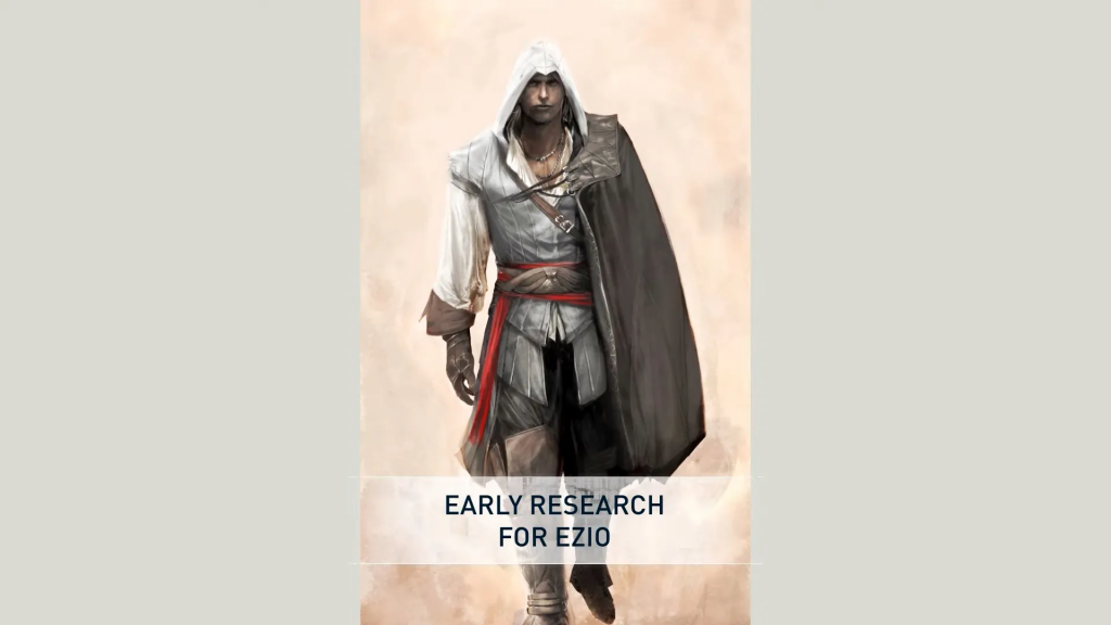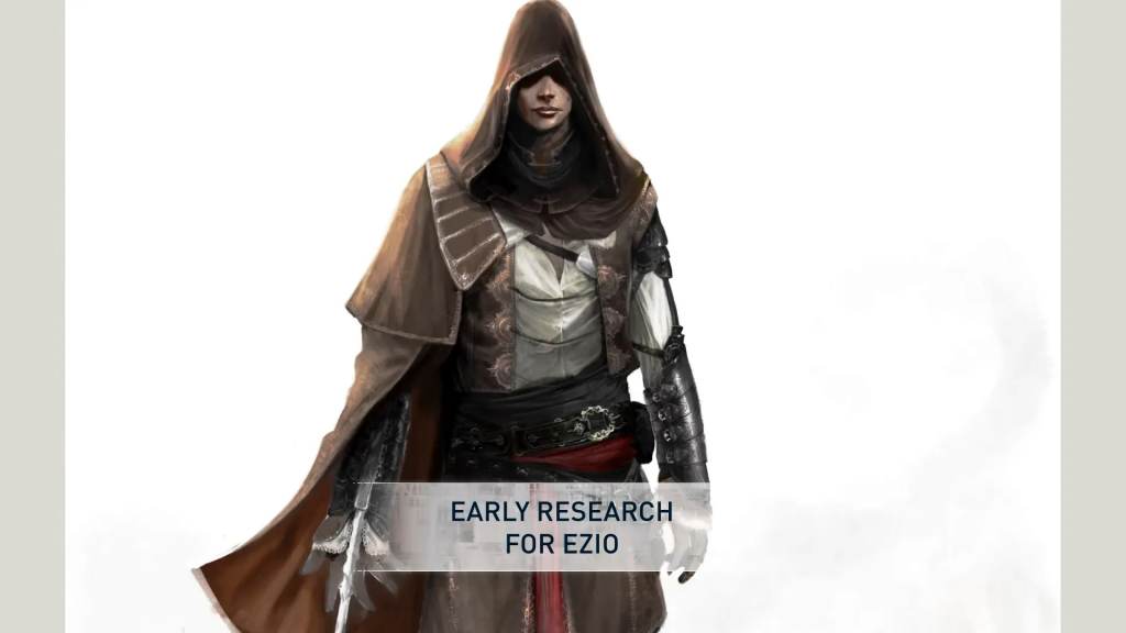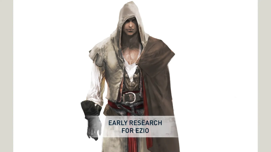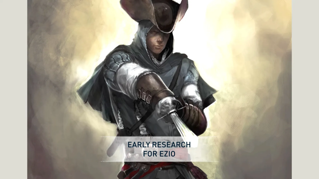 Эцио эволюционировал жёстко: Изначально — суровый дворянин с жёстким лицом, тяжёлой бронёй и 3 скрытыми клинками (две на левой руке!). Финал — харизматичный плейбой Ренессанса. Концепты из доки взорвали комьюнити!