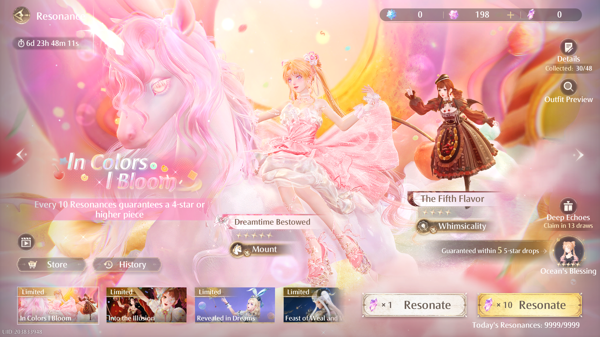 Вместе с главным нарядом в ограниченном банере «In Colors I Bloom» можно получить очаровательный 4-звездочный комплект The Fifth Flavor, относящийся к категории Cool . Это наряд с кондитерской тематикой, который дарит Никки забавную способность каприза (Whimsicality) под названием «Сладкие творения» (Sweet Creations) . Никки может создавать в воздухе аппетитные пирожные, идеально вписываясь в сладкую атмосферу обновления.