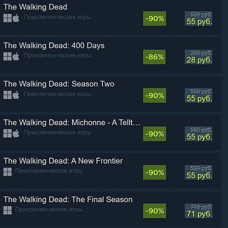 - Полный комплект (все сезоны, дополнения и спин-офф The Walking Dead: Michonne) — 319 рублей.
