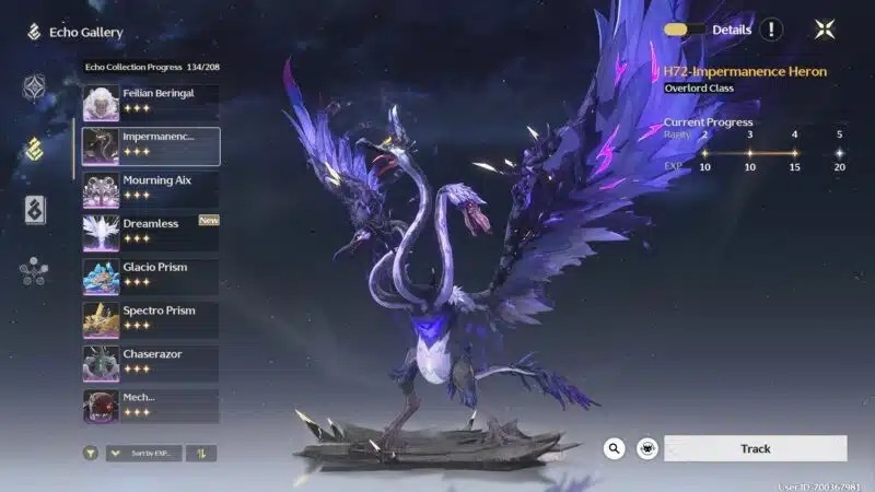 Violet-Feathered Heron и Cyan-Feathered Heron в Wuthering Waves — это редкие Эхо класса «Владыка» (Overlord Class), которые добываются с мирового босса Impermanence Heron. Кроме того, в открытом мире обитают Violet-Feathered Heron и Cyan-Feathered Heron — элитные мобы-цапли. Все Эхо, падающие с них, имеют разные характеристики и относятся к различным сетам, усиливающим элементальный урон или скорость регенерации энергии.