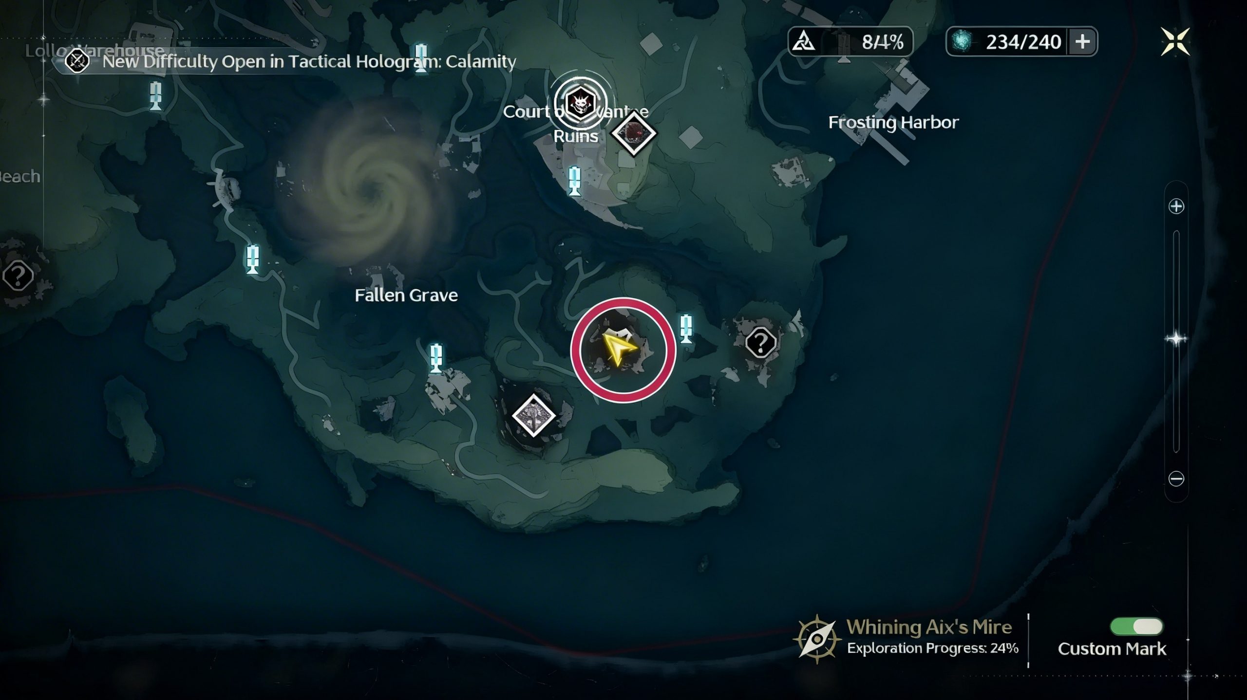 - Телепортируйтесь туда, обойдите высокую гору по северной тропинке и спуститесь к арене.