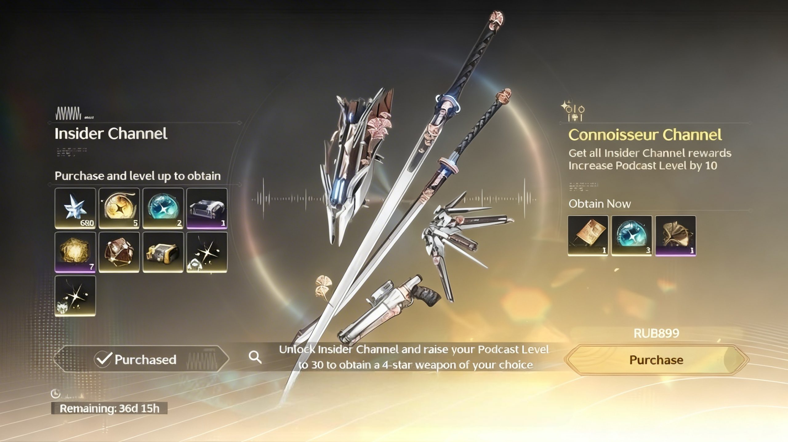 Insider Channel — улучшенная версия Pioneer Podcast с дополнительными наградами: ивентовые крутки, материалы прокачки, астриты, сундук с оружием и др.