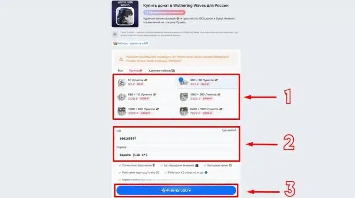 Самый удобный и безопасный способ — донат по UID (без входа на аккаунт)