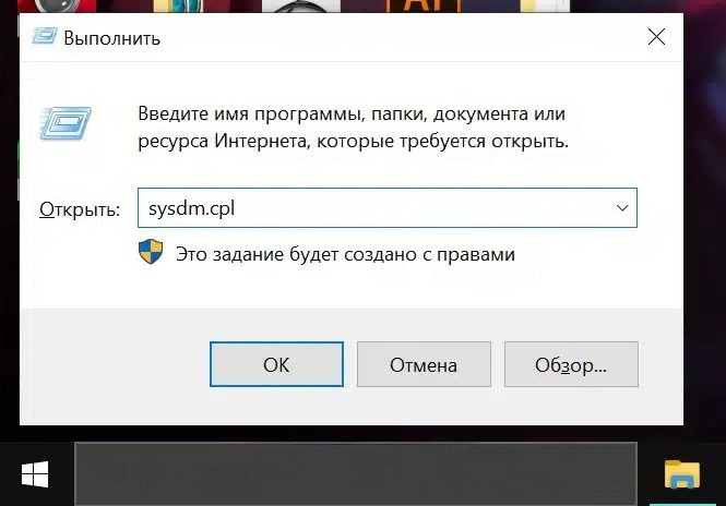 - Нажмите Win + R → введите sysdm.cpl → Enter.