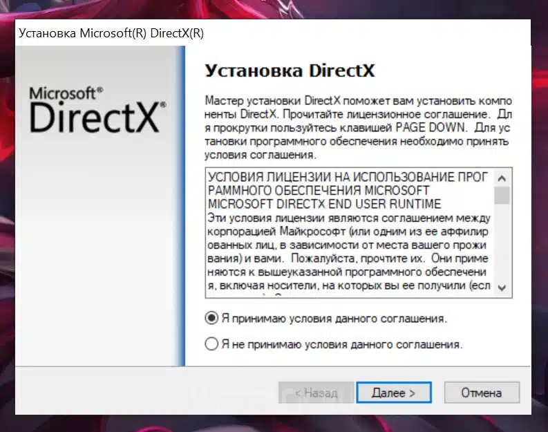 - Скачайте веб-установщик DirectX End-User Runtime (dxwebsetup.exe).