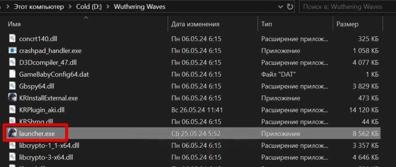- Найдите и добавьте launcher.exe (или Client-Win64-Shipping.exe по пути Wuthering Waves Game\Client\Binaries\Win64).
