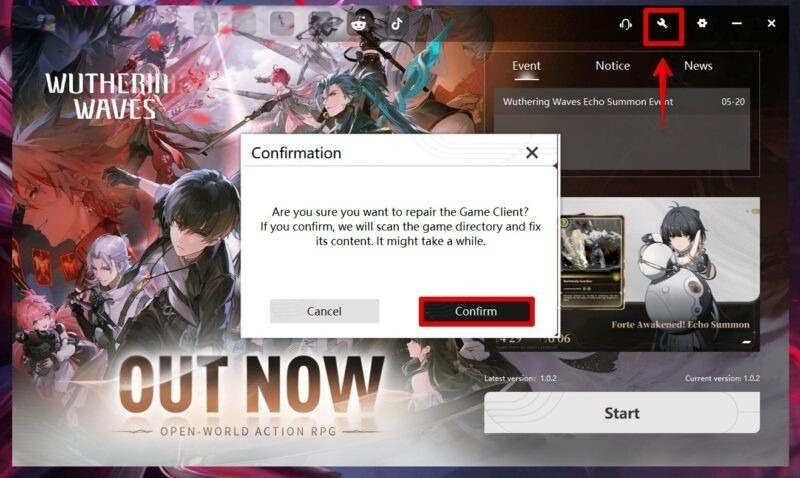 - В клиенте игры → гаечный ключ → проверка и восстановление файлов → «Confirm».