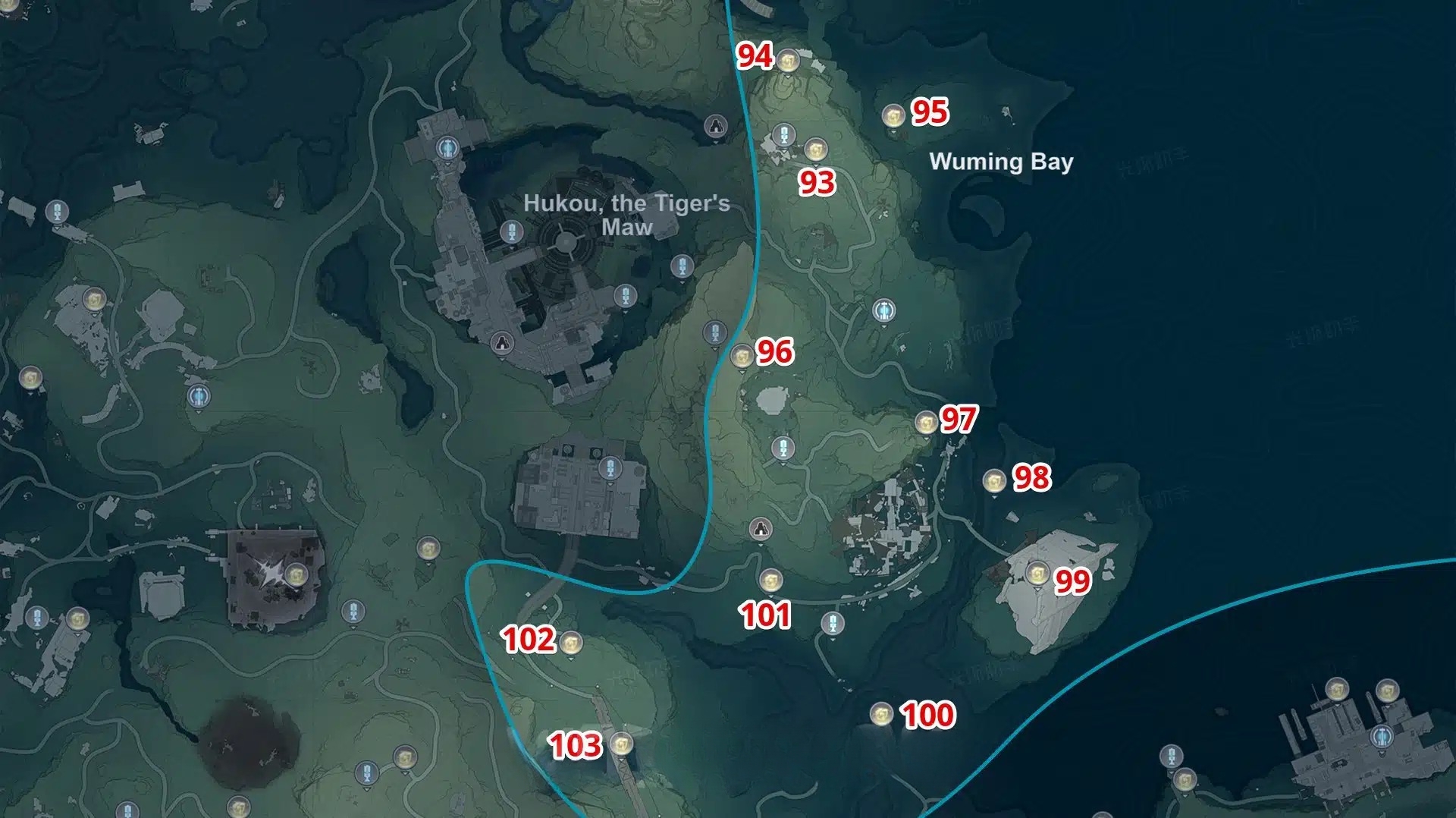 • №32: Телепорт Ущелья-Цзиньчжоу → озеро Loong’s Gaze — точка в воздухе или по скале.