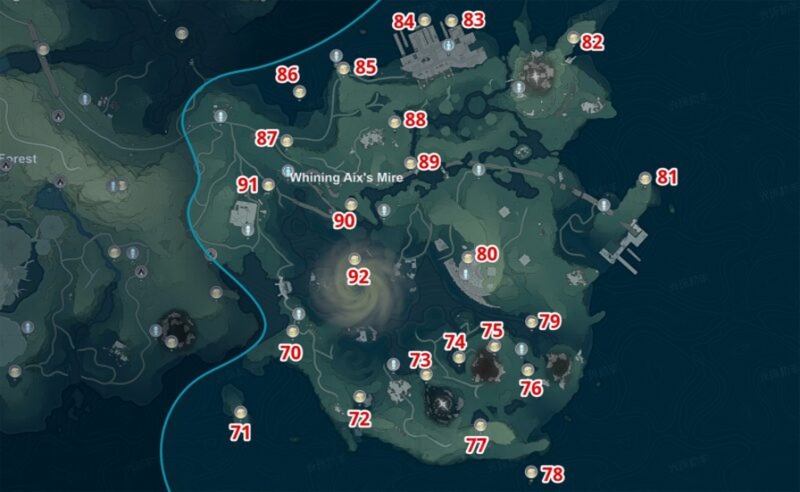 • №24: Северо-восток Qichi — озеро, каменистая возвышенность.