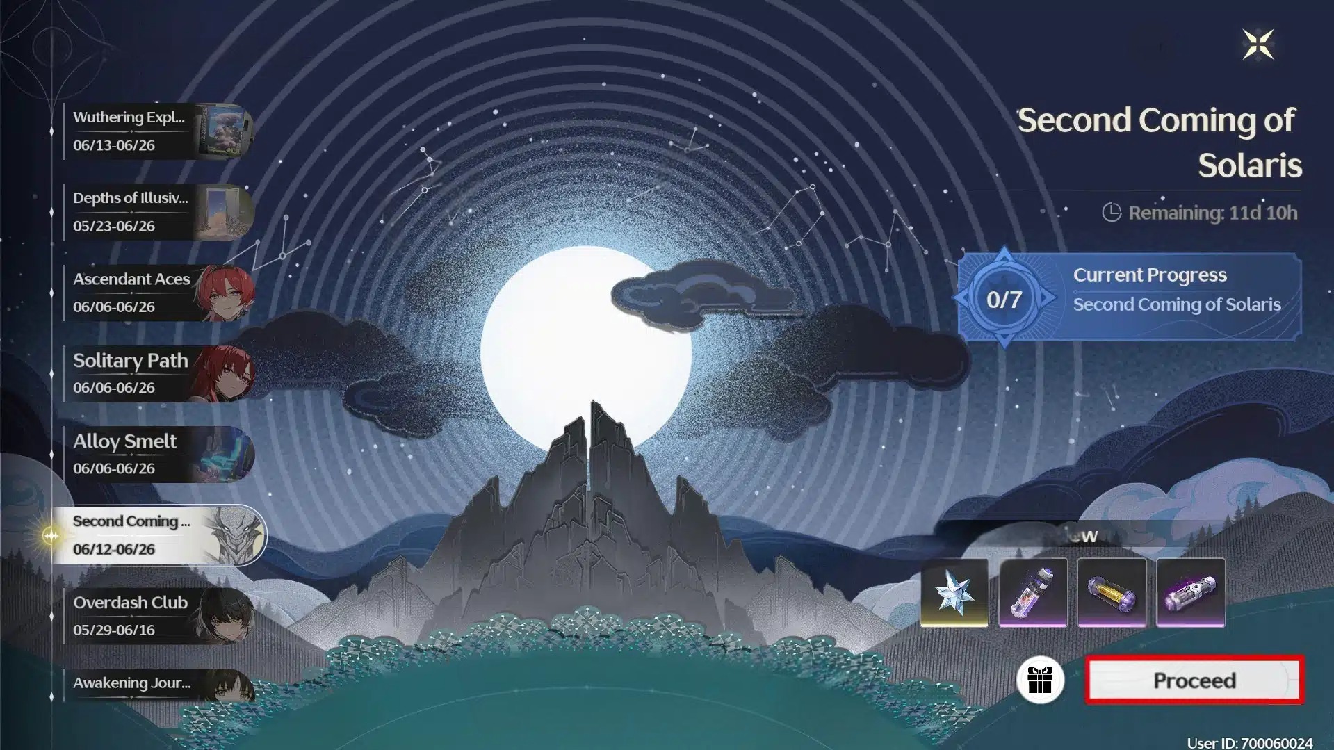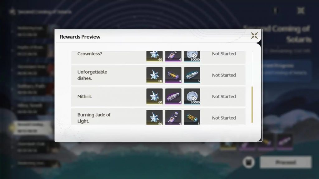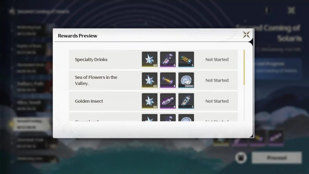 Награда: 60 Astrite, 4 Advanced Sealed Tube, 30 000 Shell Credit.